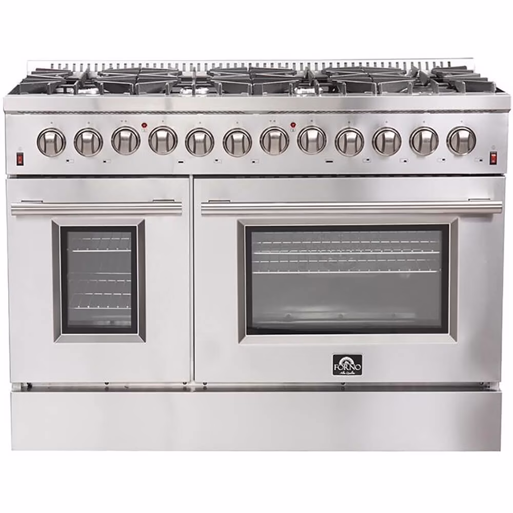 Forno Galiano 48-Inch Freestanding Dual Fuel Range, 8 Burners, Double Convection Ovens