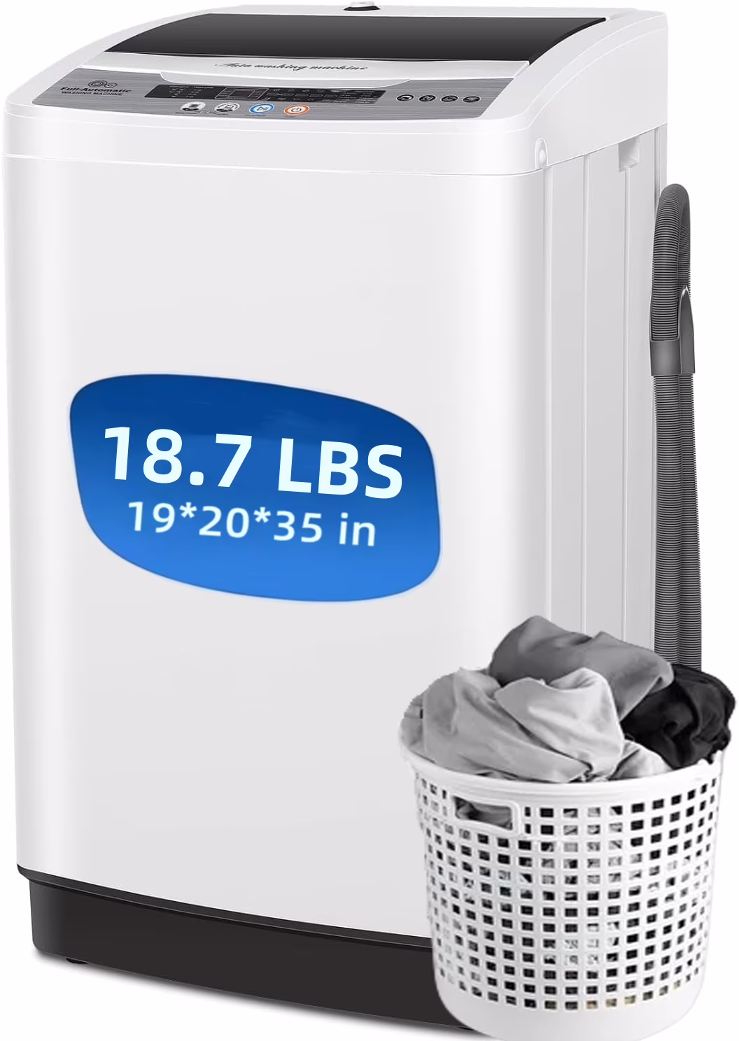 Qhomic Portable Washing Machine, 18.7lbs Full Automatic Compact 10 Programs & 8 Water Levels Washer Machine with Child Lock and LED Display, Low Noise Laundry Wash for Apartments, RVs, Dorms