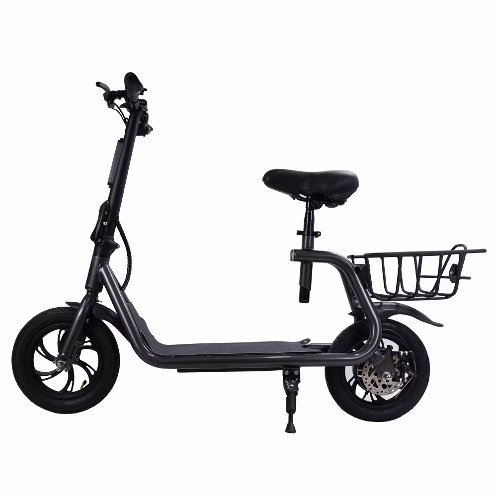 Electric Scooter Adult with Seat, 12 inch Tires 350W Motor Foldable E-Bicycle with Basket Dual Disc Brakes
